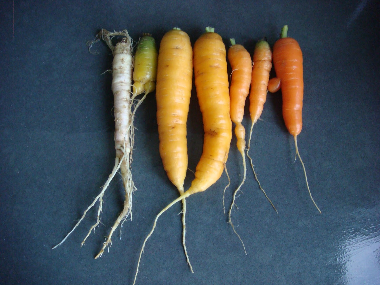 I picked carrots from the line that's supposed to have white carrots in it and got a variety of colours. The pure white ones are generally practically inedible, they're so tough and scrawny. I got the seeds form the allotments where I did my course. They'd produced them themselves. I suspect their white carrots of having mated with orange carrots, hence the variety of colours. I might give it a go from the seed they look like they're trying to produce themselves this year - some of the carrots from the line decided they were annuals not biennials (=flower in the 2nd year) and bolted, so I may get seed.